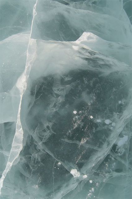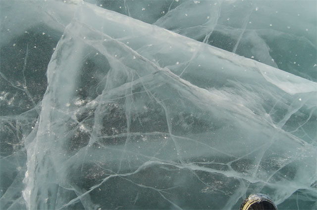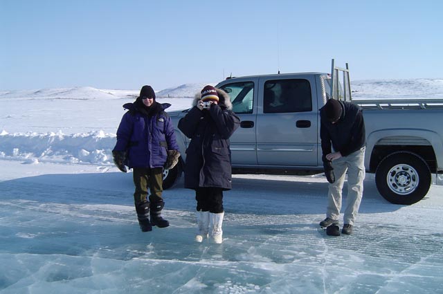 By clearing the snow off the ice, the road area can be twice as thick as the ice a few feet away under the snow. The ice ranges in thickness from six to 12 feet!
