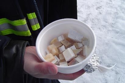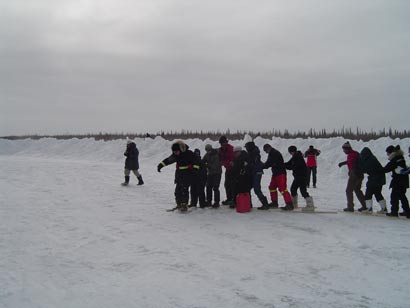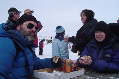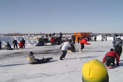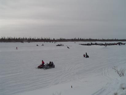 We arrived just in time for the Annual Muskrat Festival. It started with a huge feast that included all sorts of Northern foods - from Caribou to Muskrat. The festival continued for three days with all sorts of races and events, most of which took place on the frozen river. Bannock making and tea boiling, are contests that probably only happen in the north but the competition is still very fierce.