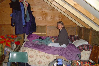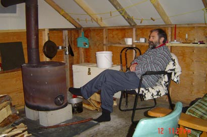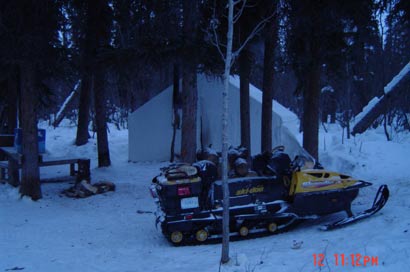 The camp itself was a wonderful spot. Two tents are set up on a point overlooking the River with all the Northern amenities one could need in a winter camp. We had a nice rest and would have liked to stay much longer.