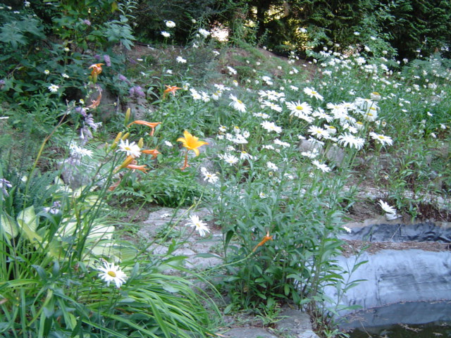 One of those long-term projects, the garden has a series of pools, which will one day be connected by a babbling brook. The local deer population seems to believe that we planted the garden just for their eating pleasure. We are skilled at growing rocks, blackberries, and alder trees! |